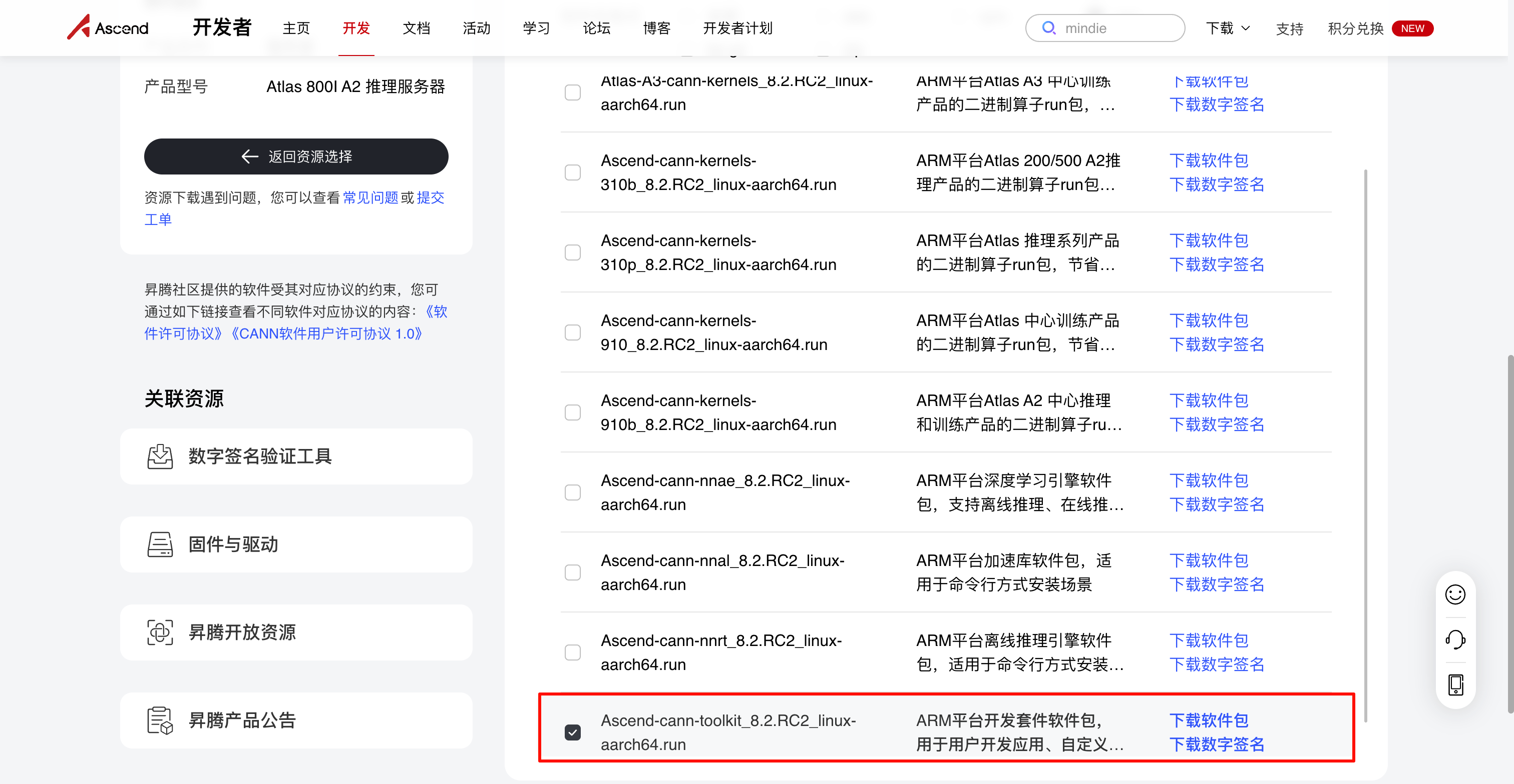 CANN查找页面:https://www.hiascend.com/developer/download/community
