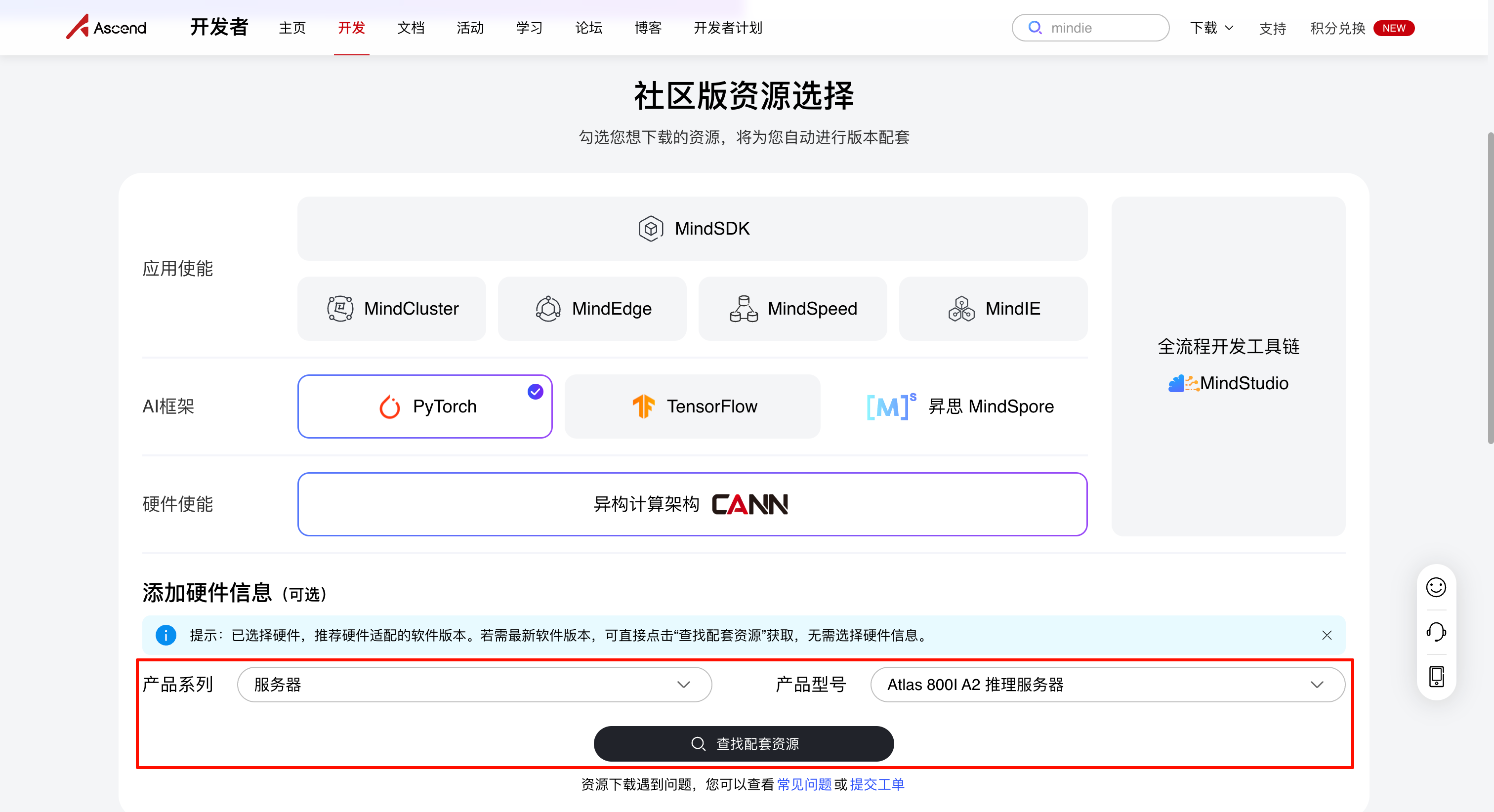 选择「产品系列」与「产品型号」后点击「查找配套资源」可以跳转到对应的资源下载页面